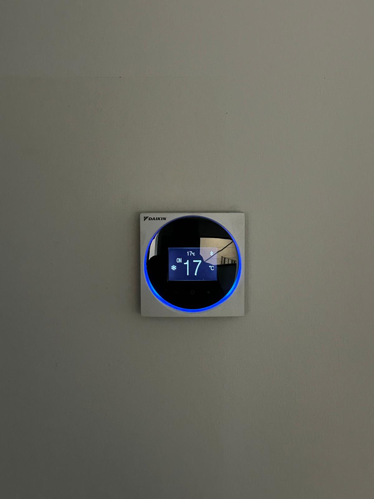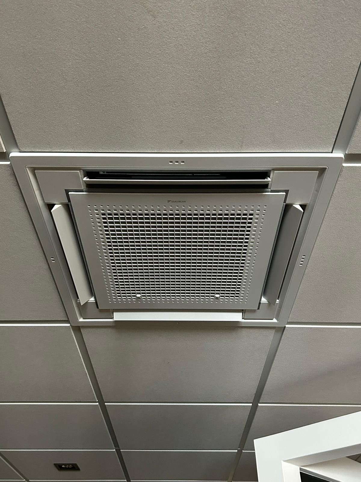 Bij dit project is gekozen voor een Daikin multisplit systeem, waarbij meerdere binnendelen worden aangesloten op één buitenunit. In totaal zijn twee kleinere wandunits en één cassette unit geïnstalleerd, allemaal aangesloten op één Daikin multisplit buitendeel.